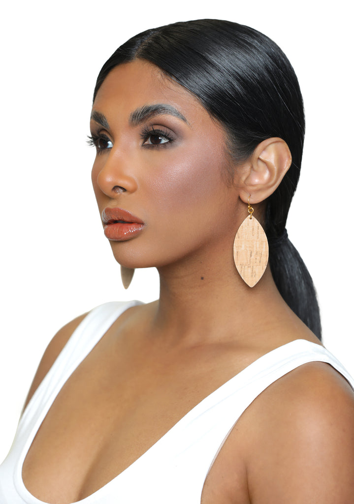 Cork board coolness with these tan cork type styled earrings. Great fashion fun.